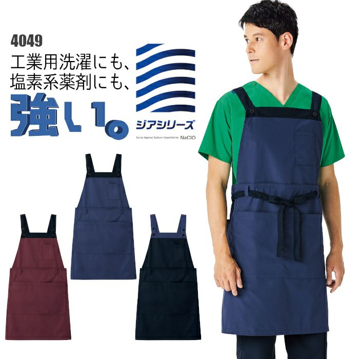 工業用洗濯、塩素系薬剤にも強い色落ちしないエプロン エプロン ショート 塩素剤消毒対応 医療用 男女兼用 白衣 4049 FOLK フォーク