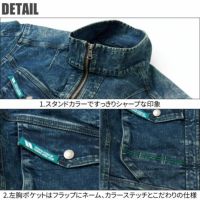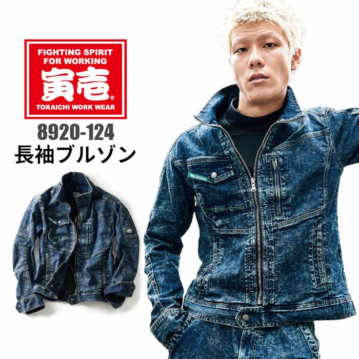 ヴィンテージ加工のストレッチデニム作業服 作業着 ジャケット 長袖 デニム ストレッチ 8920-124 大きいサイズ 寅壱