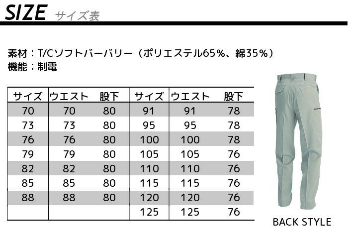 作業服 パンツ 6073 バートル
