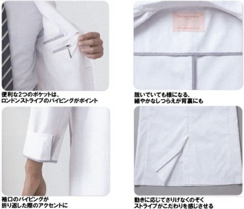 ドクターコート(診察衣)は、医師だけでなく、薬剤師や研究施設、理系学生や美大生、美容業界まで多方面で活躍しています。医師の信頼感を高めるフォーマルなデザインから、時代を先取りしたファッショナブルなデザインまで、使用環境に合わせて、最適な商品を楽しんでお選びください。