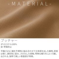 立体感があり表情豊かなブッチャー生地を使用したサロン向けチュニック。胸元のグログランテープで作ったリボンモチーフがスイートなアクセントに。愛らしく親しみやすい印象で、ゲストの緊張をやさしくほぐします。