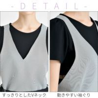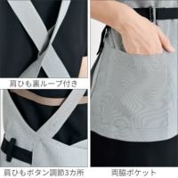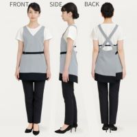 細かな千鳥模様が洗練された印象のエステサロン向けエプロン。繊細な千鳥柄はパッと見たときにグレーの無地に見えるので、様々なユニフォームとも相性抜群です。撥水・撥油加工の素材で施術の際も安心です。エステはもちろん、化粧品ブランドのお手入れ会、オイルマッサージなど多様なシーンで着用いただけます。