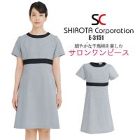 細かな千鳥模様が洗練された印象のエステサロン向けワンピース。繊細な千鳥柄はパッと見たときにグレーの無地に見えるので、着映えも上品です。撥水加工の素材で施術の際も安心。エステはもちろん、化粧品ブランドのお手入れ会、オイルマッサージなど多様なシーンで着用いただけます。
