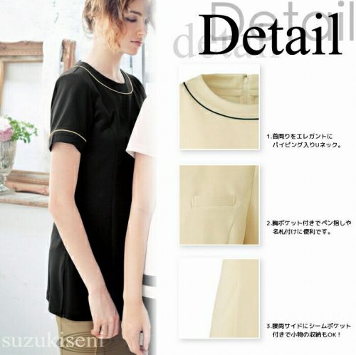 ナガイレーベン LH-6212メイクや髪が崩れずに着られる前開きタイプ。ポケット付きなのも◎