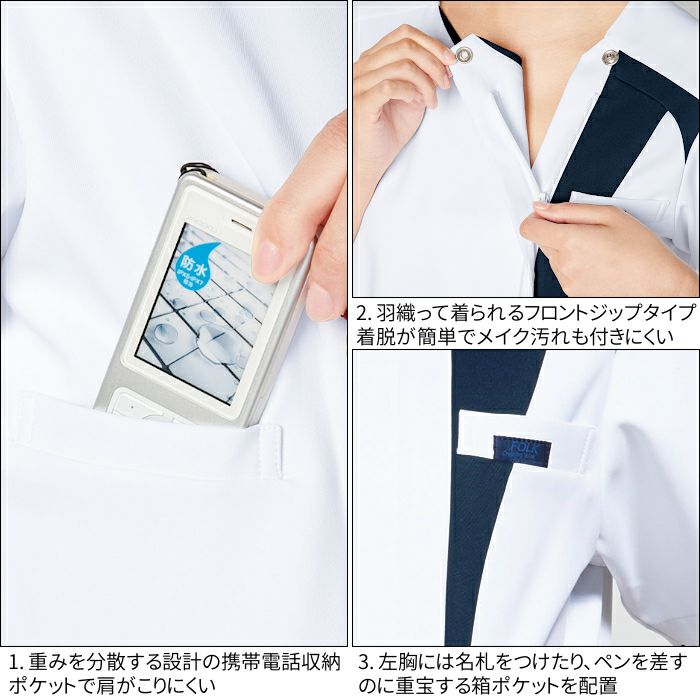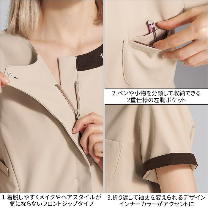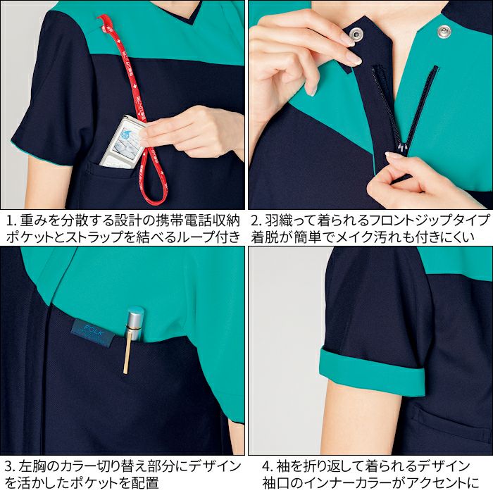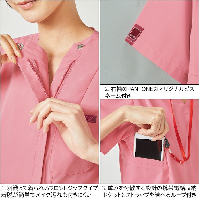 フォークのジップスクラブ、ワコール ジップ、パントン ジップを買うならここ!羽織って着るので、髪型もメイクの汚れも気にせずにスピーディーに着脱できるため、女性から圧倒的な支持を得ているシリーズです。