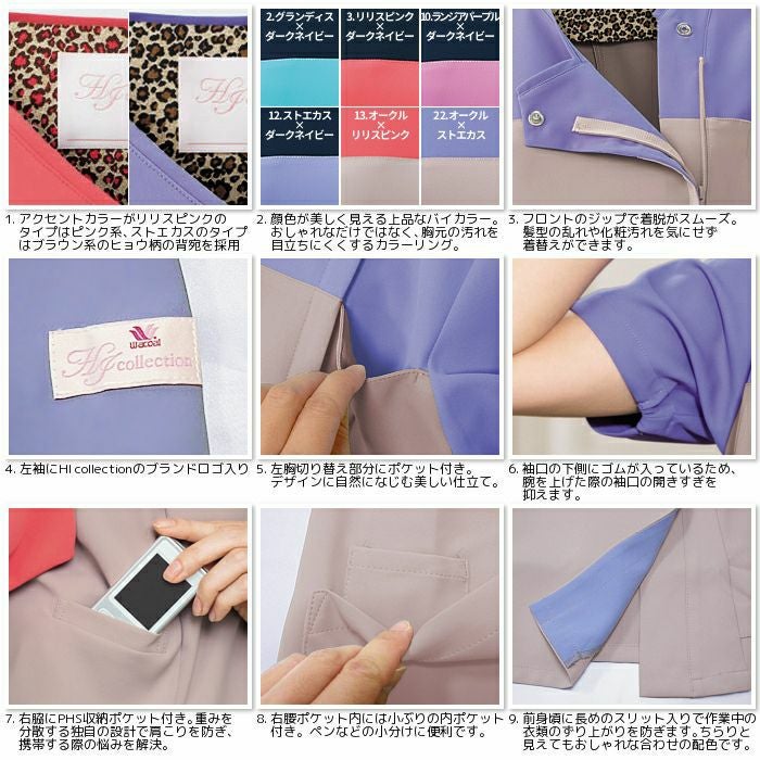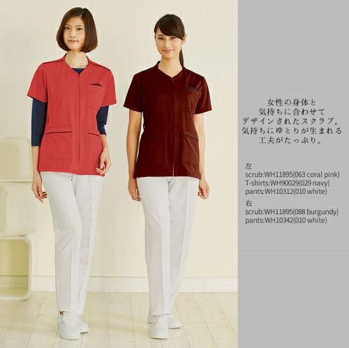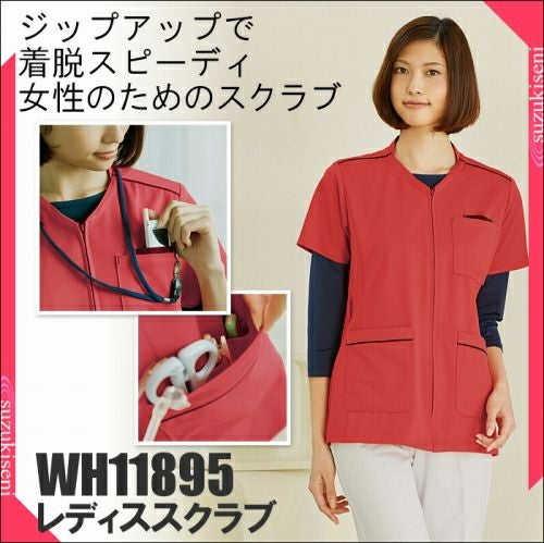 ホワイセルwh11495 レディースフロントオープンスクラブ すっきりしたシルエットときれいな発色