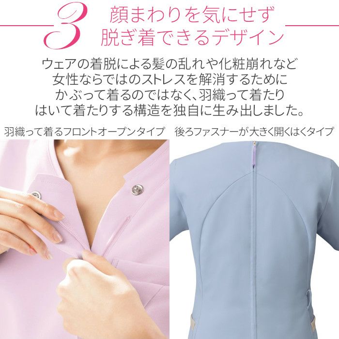フロントオープンのスクラブ、ジップ(フォーク)ミズノ、ミズノ、 ナガイレーベン、ホワイセルを買うならここ!羽織って着るので、髪型もメイクの汚れも気にせずにスピーディーに着脱できるため、女性から人気です。