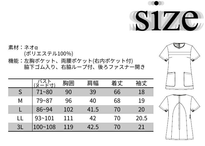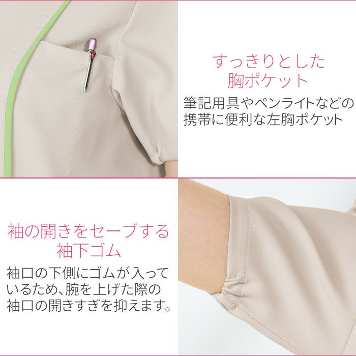 かがんだり、しゃがんだりする作業が多い医療現場でも ヒップまで隠れる長め丈のウエアを快適に着て頂けるよう、 前身頃にウエアがずり上がるのを防ぐ長めのスリットを入れました。