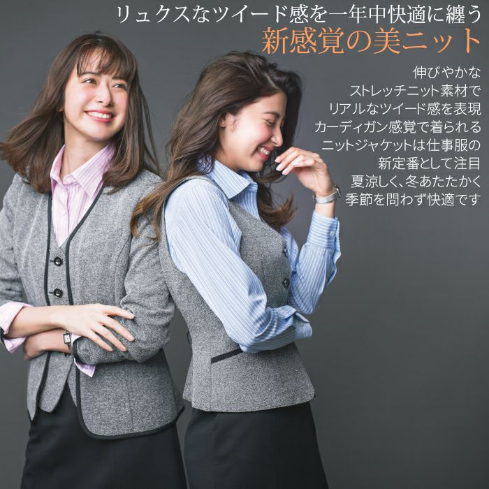 他の画像を見る ふんわりフィットする見た目も優しげな杢グレーニットスーツ 事務服 EAJ414 ジャケット ニット グレー enjoy カーシー 当店特別価格 ¥ 18,260 税込 詳細を見る お気に入りに登録する