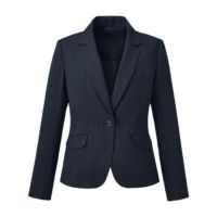視覚マジックで細見え効果も!ツイル組織と杢グレーによる繊細なライン、更にパープルのさし色で女性らしさを表現したストライプ柄。