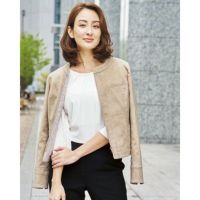 ファッション性の高いフェイク・スエードのノーカラージャケット。