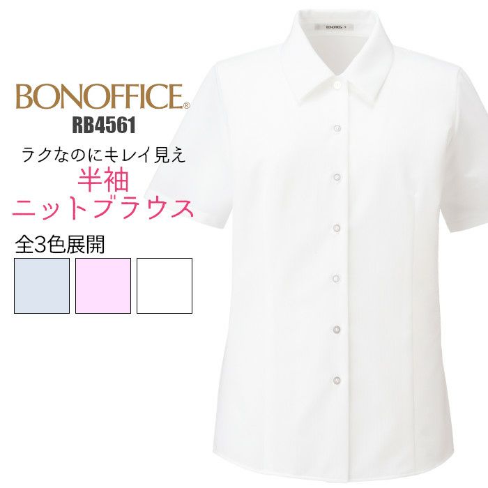 ニット素材でラクチンなのにキレイ見えするブラウス 事務服 RB4561 ブラウス 半袖 ニット BONMAX