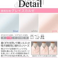 さらりとドライな肌触りに、インナーのチラ見えを防ぐピッチの狭いボタンなど、働く女性に嬉しい機能性です。