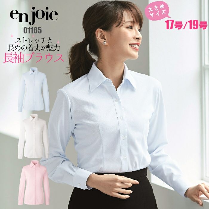 のびやかなニット素材の定番シャツ 事務服 長袖ブラウス 大きいサイズ 01165 enjoie
