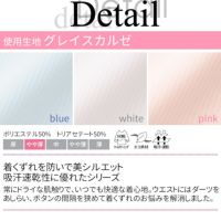 着くずれを防いで綺麗なシルエットをキープ。さらりとドライな肌触りに、インナーのチラ見えを防ぐピッチの狭いボタンなど、働く女性に嬉しい機能性です。