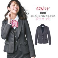 ふんわりフィットする見た目も優しげな杢グレーニットスーツ 事務服 EAJ414 ジャケット ニット グレー enjoy カーシー