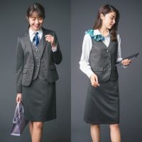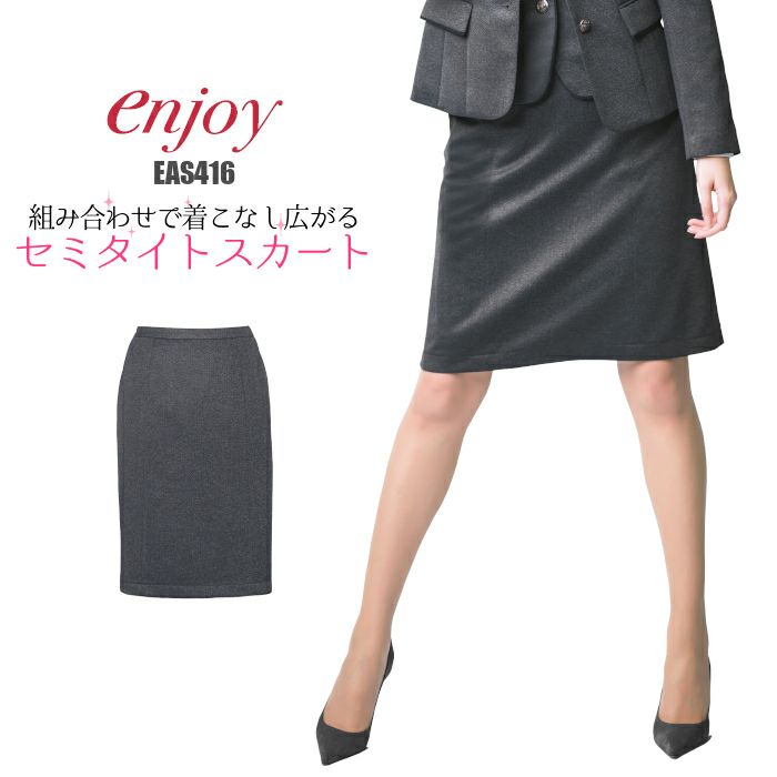 ふんわりフィットする見た目も優しげな杢グレーニットスーツ 事務服 EAS416 スカート セミタイト ニット グレー enjoy カーシー