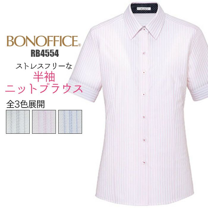 ストレスフリーな高機能ニットブラウス 事務服 RB4554 ブラウス 半袖 ニット ストライプ BONMAX