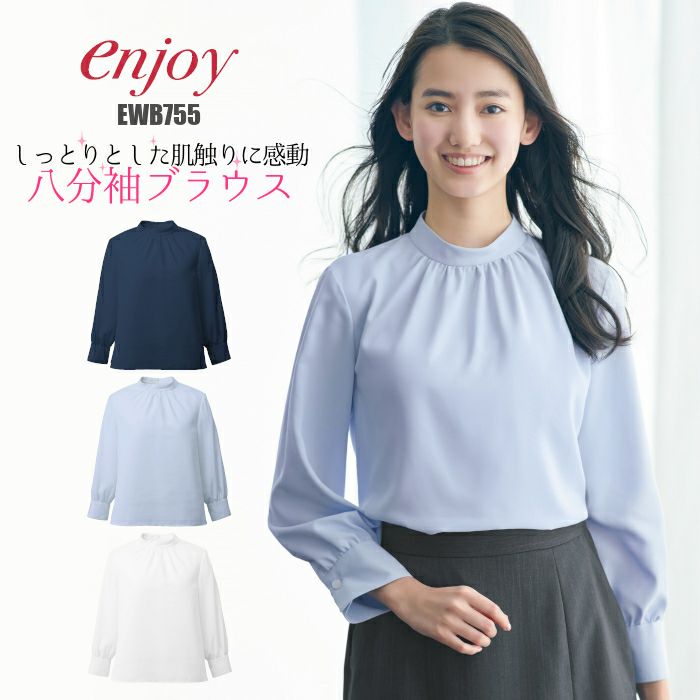 しっとりとした肌触りで体を包み込むブラウス 事務服 EWB755 ブラウス 8分袖 しっとり enjoy カーシー