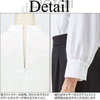 スタンドカラーのすっきりした印象と、ギャザーのふんわりしたバランスも絶妙。