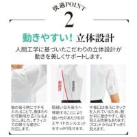 人間工学に基づいた動きやすい立体設計、シワになりにくくアイロン不要のイージーケアも嬉しい。