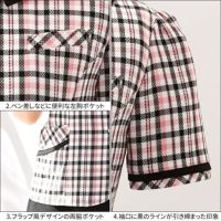 親しみを感じるチェックに黒のラインがほどよく誠実な印象のオーバーブラウス。癒し系のデザインで、オフィスではもちろん、受付係りにもピッタリです。