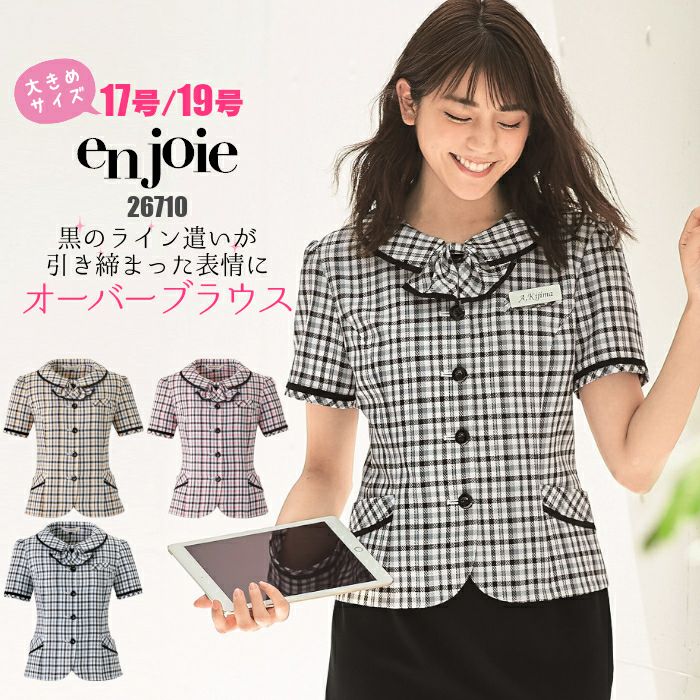 安心感のあるデザインで癒しを感じる 事務服 オーバーブラウス 大きいサイズ 17号 19号 26710 enjoie