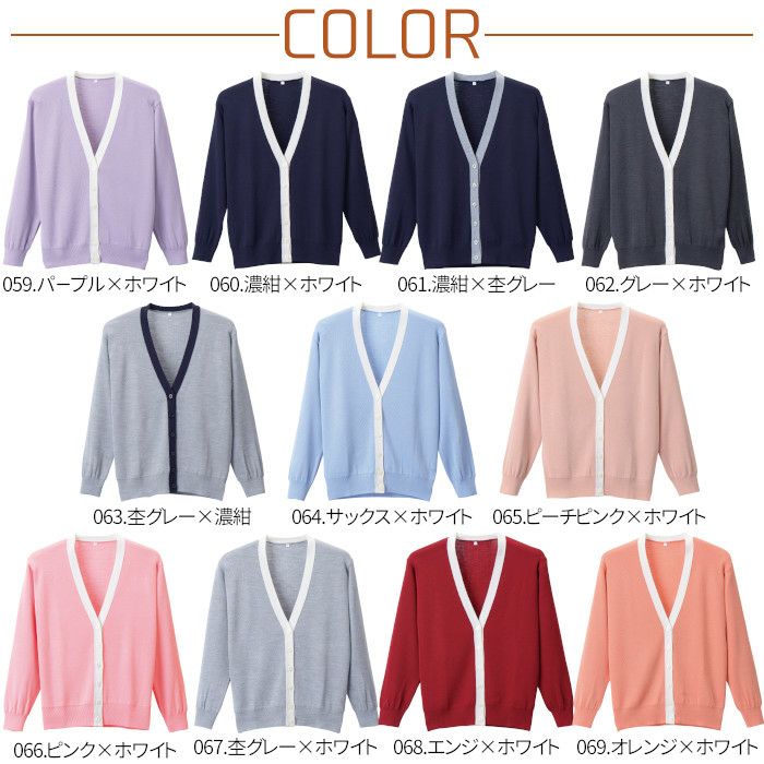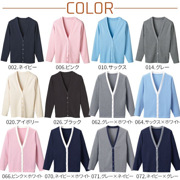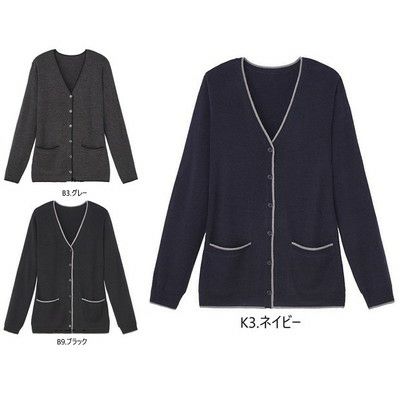 オフィスカジュアルにふさわしく、制服にも似合う白・黒・グレー・ネイビーのカーディガンが種類豊富。ロングカーディガンや毛玉防止、静電気防止等の機能的なカーディガンもご用意しております。