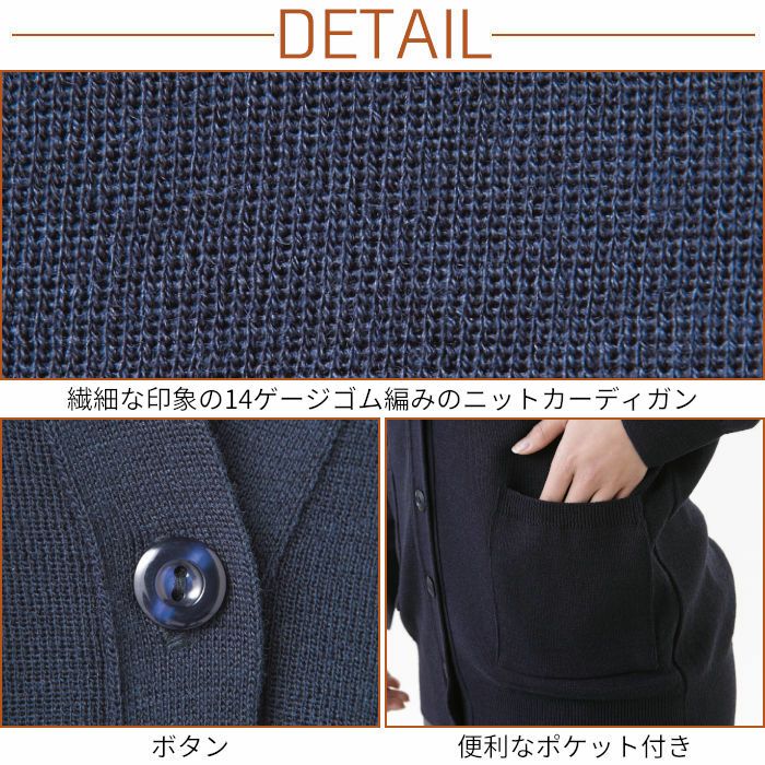 d-1002|ロング丈(腰丈) カーディガン 13色展開。日本製。オールシーズン着用可能な14ゲージの滑らかな薄手ニット。