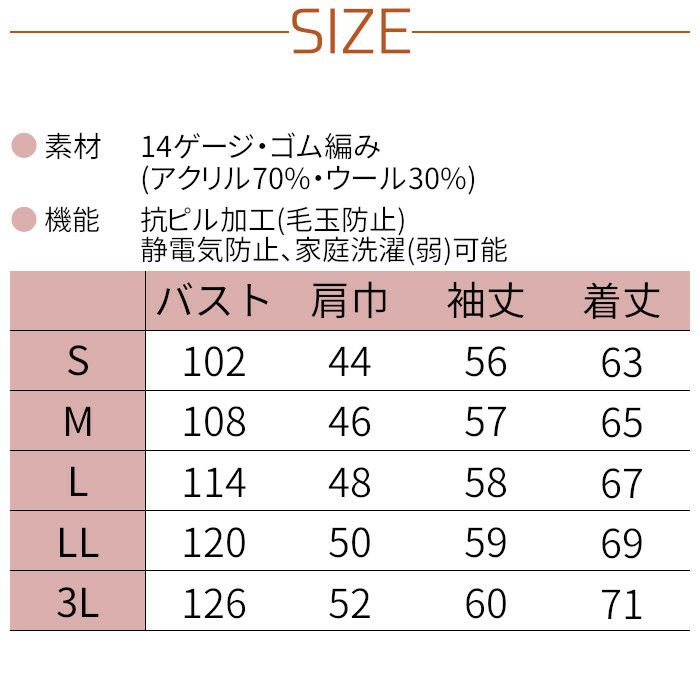 kk7122|カーディガン 毛玉防止・静電気防止。絶妙な丈感で体型カバー。