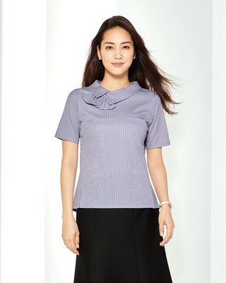 アシンメトリーの衿とサイドリボンがアクセントのトップス。リボンは取り外しができるタイプです。