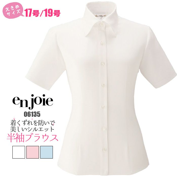 着くずれにくい理想のブラウス 事務服 半袖ブラウス 大きいサイズ 06135 enjoie