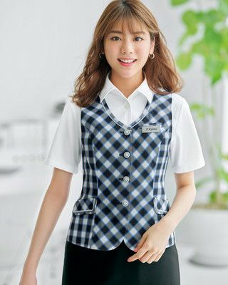 襟ぐり、ポケットには白のパイピングを入れ清涼感をアップしたデザイン。シルバーを組み合わせた釦も涼し気な印象に仕上げています。