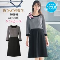 通気性が良いエコ素材のオフィスウェア 事務服 ワンピース 七分袖 春 夏 AO5801 BONMAX ボンマックス