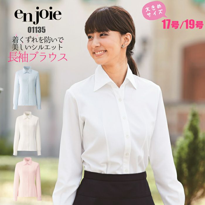 着くずれにくい理想のブラウス 事務服 長袖ブラウス 大きいサイズ 01135 enjoie
