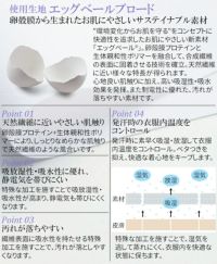 「環境変化からお肌を守る」をコンセプトに開発されたサステイナブル素材のブラウス。卵殻膜プロテインと生体親和ポリマーによりしっとりなめらかな肌触りを実現。衣類内の湿度をコントロールしていつでも心地良い着心地を実現しました。