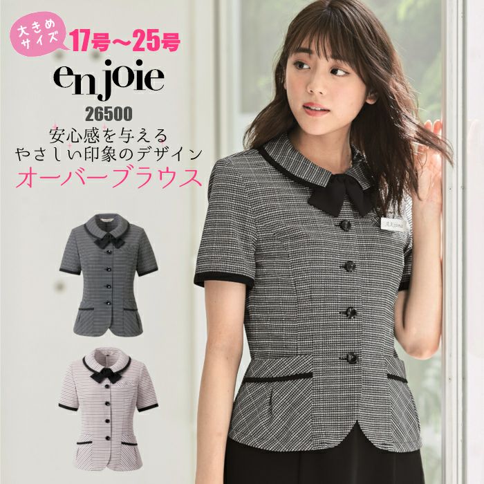温かみのあるボーダーデザイン 事務服 オーバーブラウス ニット 大きいサイズ 17号~25号 26500 enjoie