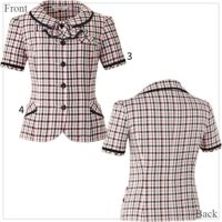 親しみを感じるチェックに黒のラインがほどよく誠実な印象のオーバーブラウス。癒し系のデザインで、オフィスではもちろん、受付係りにもピッタリです。