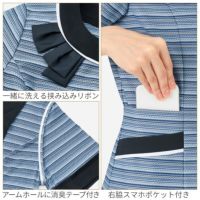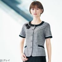 通気性がよく伸びやかな着心地がうれしい春夏のオフィスウェア。グラデーションのボーダー柄が知的で都会的な印象に。環境に優しいカラー原着糸を生地に使用し、使用する水と排出する二酸化炭素の排出を大幅にカットしました。シワになりにくくお手入れが簡単なシリーズです。