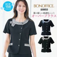 知的な印象のニット素材!春夏のオフィスウェア 事務服 オーバーブラウス AJ0853 BONMAX ボンマックス