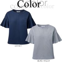 ノーカラーでオーバーブラウスのような着こなしができるポロシャツ。シンプルな形でジャパンメイドの高品質で美しい千鳥柄ニットが映えるデザインです。波うつようなラッフルスリーブで女性らしいしなやかさを演出。