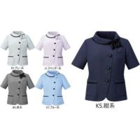 アシンメトリーの衿とリボンがアクセントになっているオーバーブラウス。