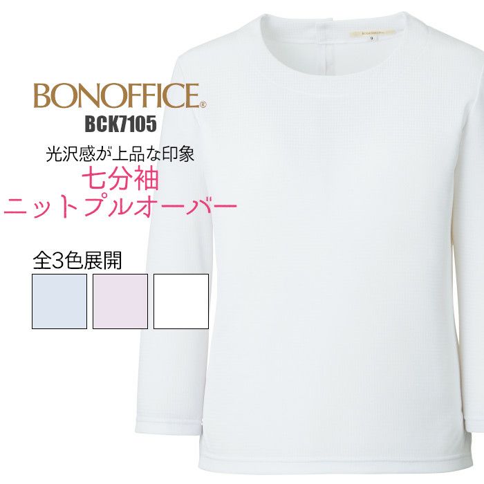 透けにくく伸びやかなニットプルオーバー 事務服 BCK7105 プルオーバー 七分袖 透けない ニット BONMAX