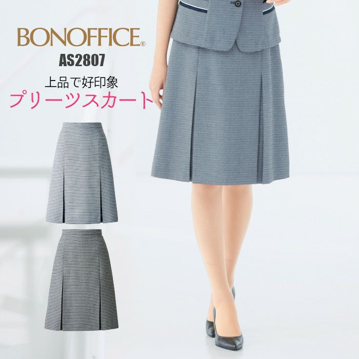 品がよく好印象!春夏の爽やかなオフィスウェア 事務服 プリーツスカート 春 夏 ボーダー AS2807 BONMAX ボンマックス