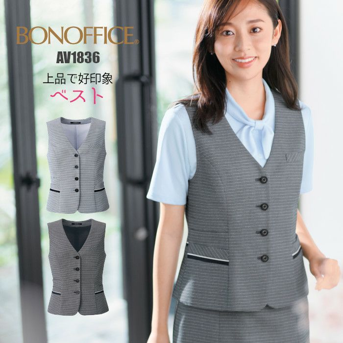 品がよく好印象!春夏の爽やかなオフィスウェア 事務服 ベスト 春 夏 ボーダー AV1836 BONMAX ボンマックス