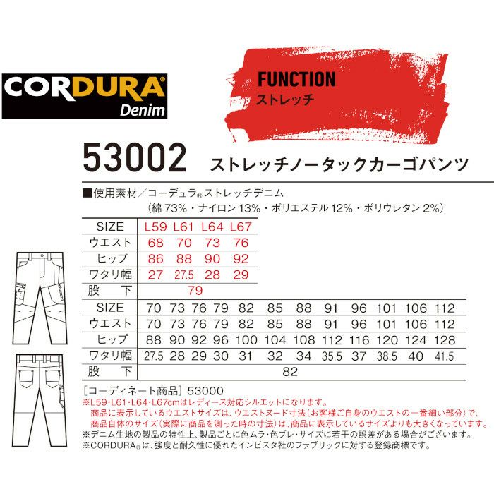 他の画像を見る おしゃれなデニム作業着にストレッチ性と優れた強度を付加 作業服 カーゴパンツ デニム ストレッチ 53002 自重堂 CORDURA コーデュラ 定価 ¥ 9,680 のところ 当店特別価格 ¥ 4,840 税込 詳細を見る お気に入りに登録する