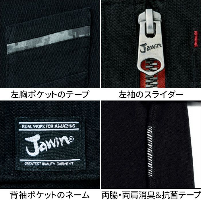 他の画像を見る ドット織りとブラック×レッドの差し色がスタイリッシュ 作業着 ジャケット ストレッチ 57200 Jawin ジャウィン 定価 ¥ 9,460 のところ 当店特別価格 ¥ 4,730 税込 詳細を見る お気に入りに登録する