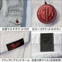 抜け感のあるカラーデニムを採用したカジュアル&スタイリッシュな作業服。ストレッチを効かせた生地で仕立てているので、着心地ものびやか。春夏に映える色展開と、ロゴプリント、刺繍、オリジナルボタンで大人のおしゃれを楽しめます。またカーゴポケットの他に前後にマルチポケット、カラビナループなどを付け、現場での使いやすさも抜群です。