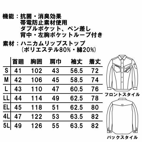 作業服 長袖シャツ 55504 自重堂 発熱素材