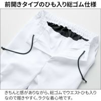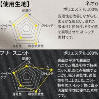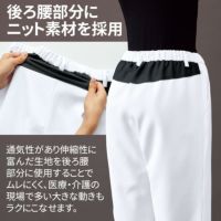 きちんと感のあるシルエット・デザインながら、動きやすさ、着心地の良さも備えた優秀なパンツ。ウエストの脇・後ろはゴム仕立てで、心地よくフィットします。腰部分は伸縮性に富んだニット素材に切り替えて、身体をかがめる、しゃがむなど大きな動作をする際もつっぱり感が少ないのが嬉しい。また、ニットの通気性の良さを活かして、衣類内の熱や不快感を素早く排出します。